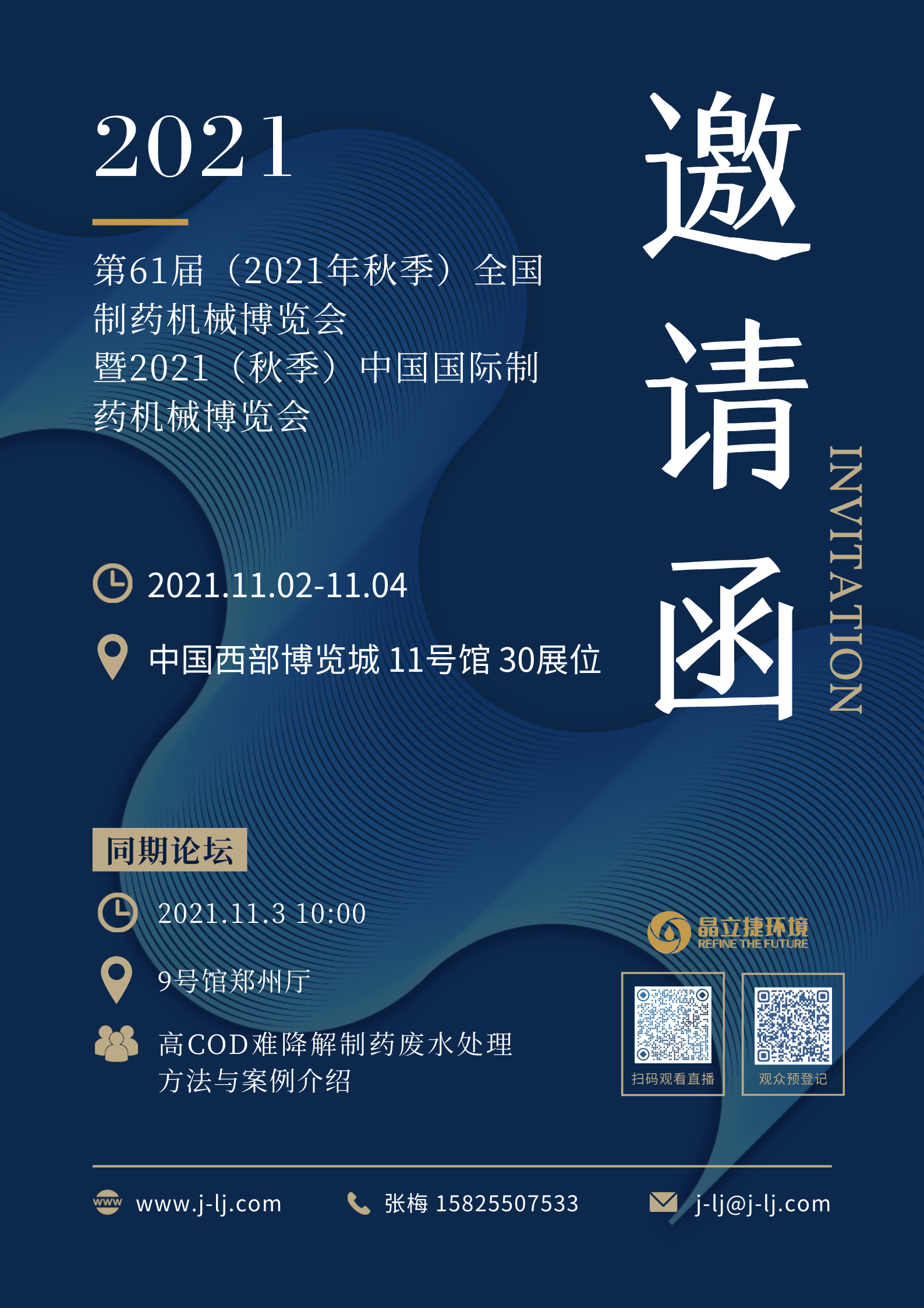 11月3日上午10:00,我司將在中國西部博覽城9號館鄭州廳開展同期論壇——高COD難降解制藥廢水處理方法與案例介紹,屆時將結合當前制藥廢水中存在的高COD、難降解等問題,通過當前展示目前處理該類廢水的案例,重點介紹該技術工藝流程、技術特點、處理范圍、運行費用、投資概況等,幫助企業尋找制藥廢水處理新方式。