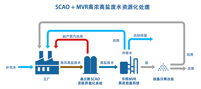 晶立捷智能和樂恒節(jié)能作為兄弟公司將各自的廢水處理技術(shù)完美的融合在一起,為客戶提供高效、節(jié)能的SCAO+MVR高濃高鹽廢水處理解決方案。